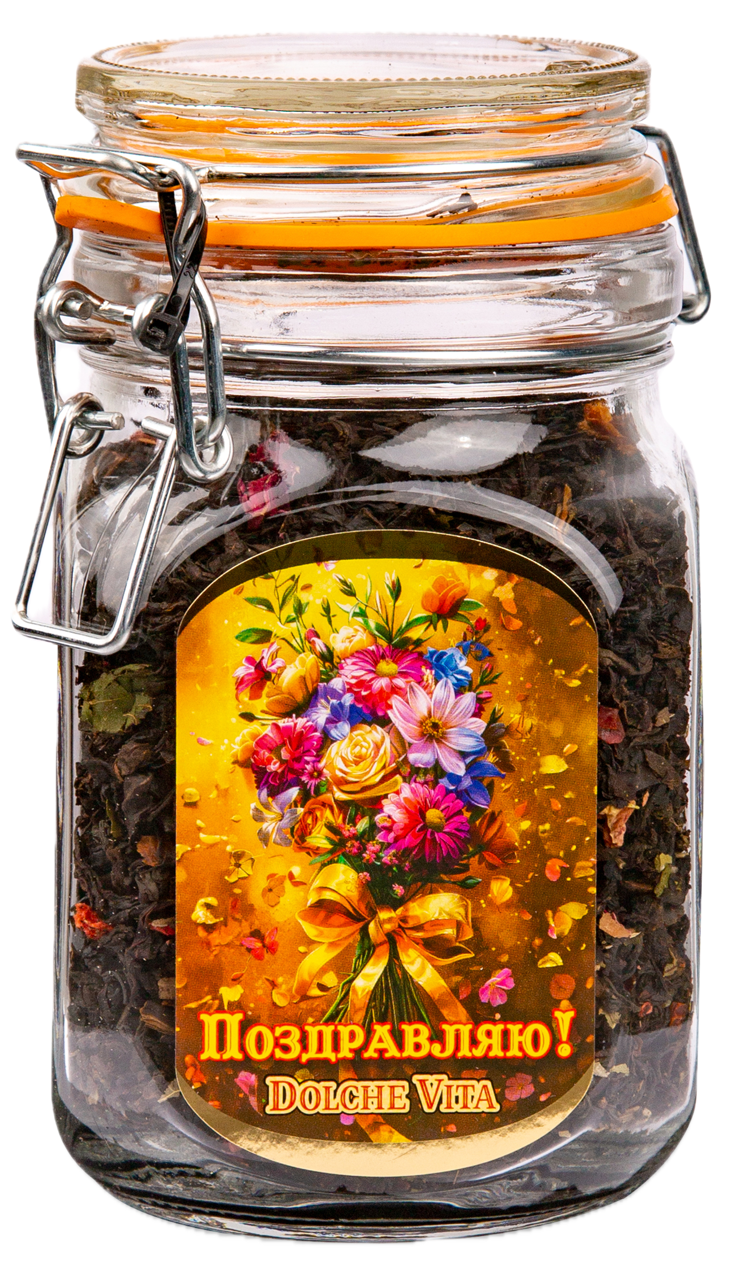 Состав: Чай черный Цейлонский и индийский крупнолистовой, ягоды и кусочки ежевики, шиповника, клубники, лепестки розы, ягоды и листочки малины и вишни, грецкий орех, натуральный ароматизатор клубники, малины и ежевики.