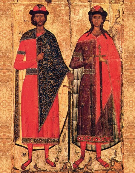 Икона на дереве " Святые князья Борис и Глеб № 1 "