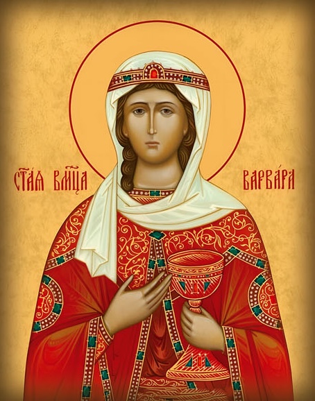 Св. Варвара жила в царствование императора Диоклетиана на рубеже III–IV вв. Она была дочерью богатого язычника из Гелиополя по имени Диоскор. Ревниво оберегавший замечательную красоту дочери, Диоскор, отправляясь однажды в дальний путь, велел запереть Варвару в высокой башне своего дворца, чтобы ни один человек не смог ее увидеть. Богатый отец дал дочери прекрасное образование и ни в чем ей не отказывал, однако был не в силах помешать проницательному разуму девушки рассуждать согласно Божественному образу, заключенному в каждом человеке. Наблюдая отражение присутствия Божия в явлениях природы, Варвара сама пришла к познанию Бога, Единого в трех Лицах, и, отвращая ум от суетных помыслов, обращалась всем сердцем ко Христу, Небесному Жениху.