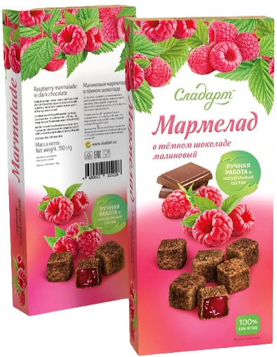 Мармелад 150 г малиновый в темном шоколаде Ягоды СЛАДАРТ.