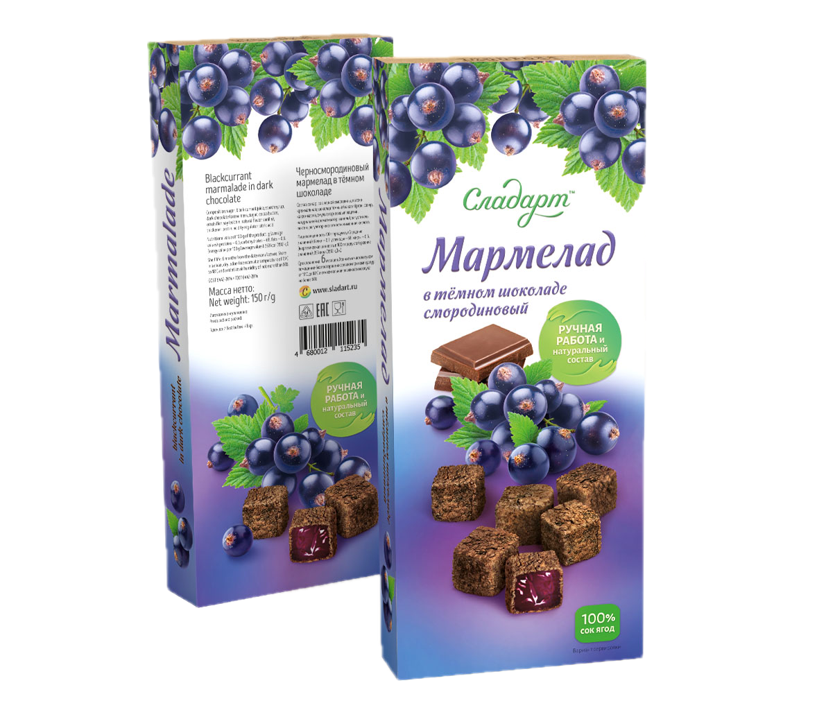Мармелад 150 г Черносмородиновый в темном шоколаде Ягоды СЛАДАРТ.